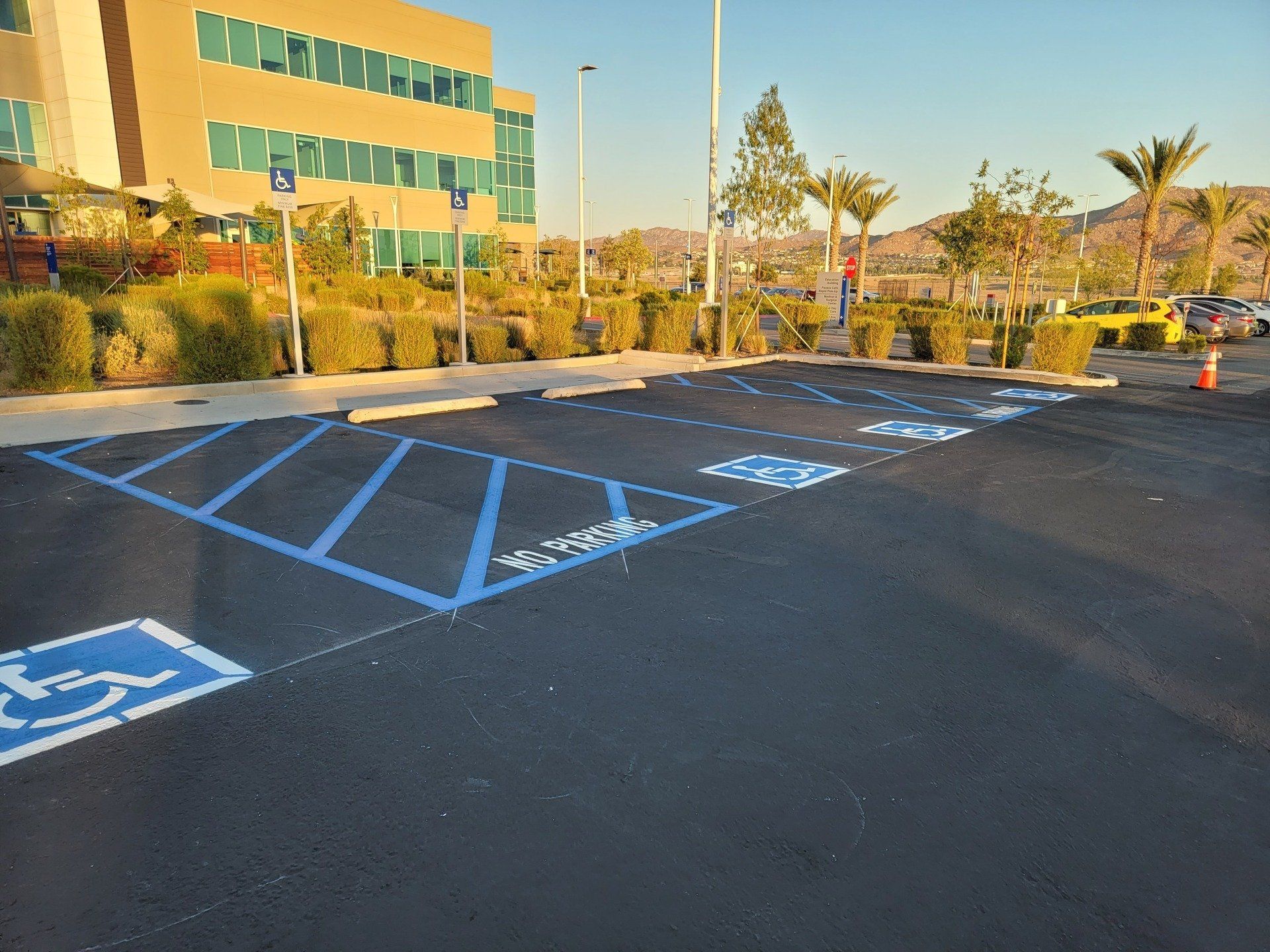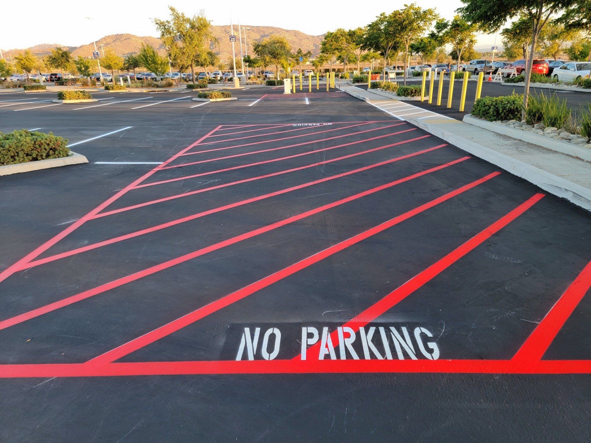Line striping is simply traffic paint applied to a parking lot to define traffic flow, parking spaces and much more. Your parking lot experiences wear and tear from the elements, car traffic, and passage of time causing traffic markings to wear and fade